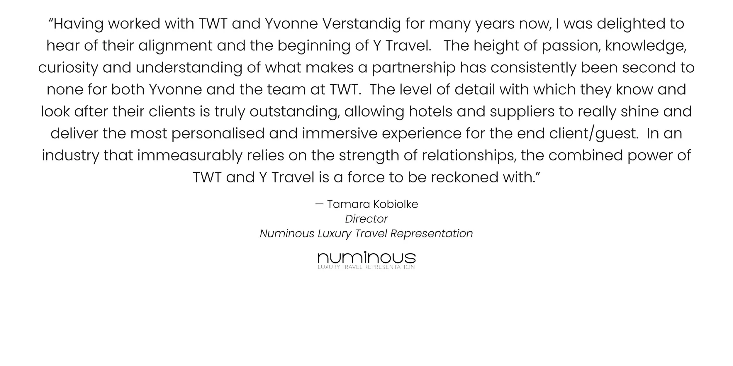 “As very long-standing clients of Trans World Travel, for both our corporate & personal family travel requirements, we are pleased to give TWT our highest recommendation. Rob Mackie & his team offer excellent service, attention to detail, & are always prepared to go the extra mile.”